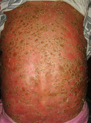 1、由于皮肤快速代谢,广泛的脱屑,丢失大量的皮肤角蛋白,如不及时补充蛋白质,可导致低蛋白血症,产生浮肿、贫血、乏力等症状。